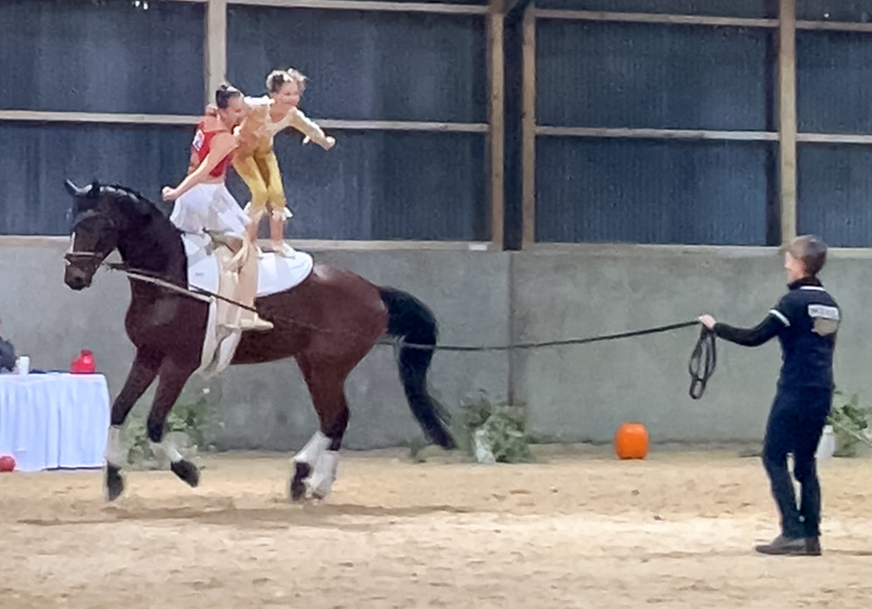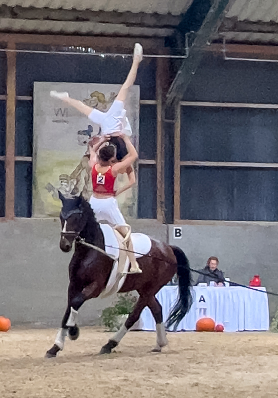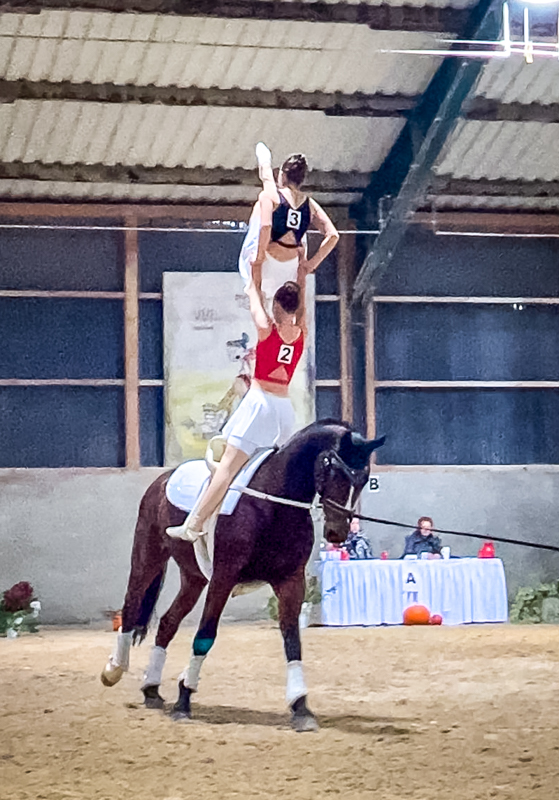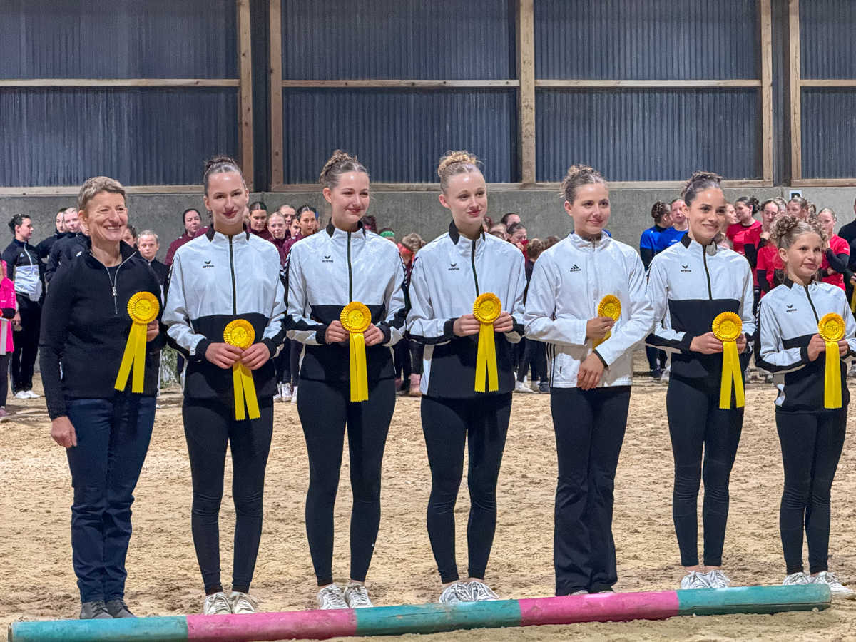 TG5 mit Lancy zeigte eine solide Pflicht bei der Lancy mal so richtig top lief und dann ihre Cheerleader Kür. Hier hatte Lancy mal wieder ein paar Runden seinen Fluchtinstinkt ausgepackt – die Sanitäter am Zirkel leuchteten und reflektierten leider zu auffällig bei dem Scheinwerferlicht am Abend. Aber die Mädels zogen ihre Performance wie immer einfach durch und wurden mit tollen Noten belohnt.